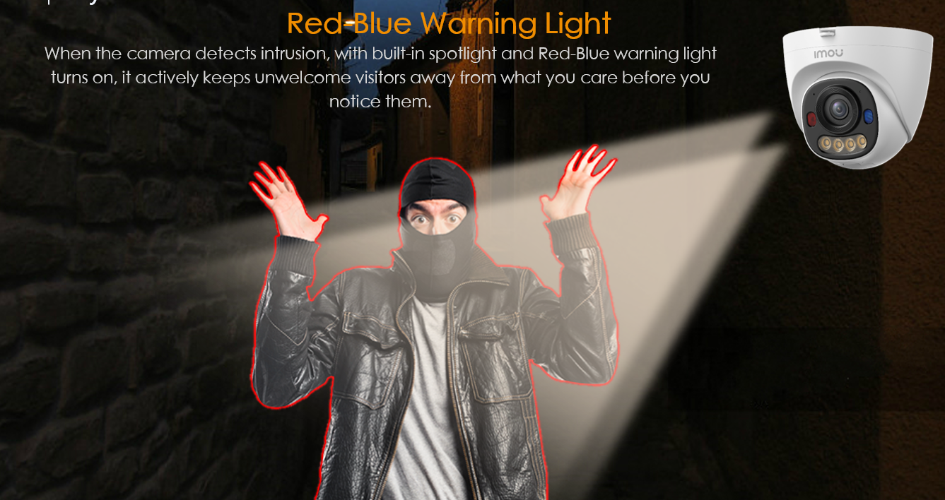 Đèn cảnh báo đỏ-xanh và spotlight – Cảnh báo chủ động, răn đe người xâm nhập.