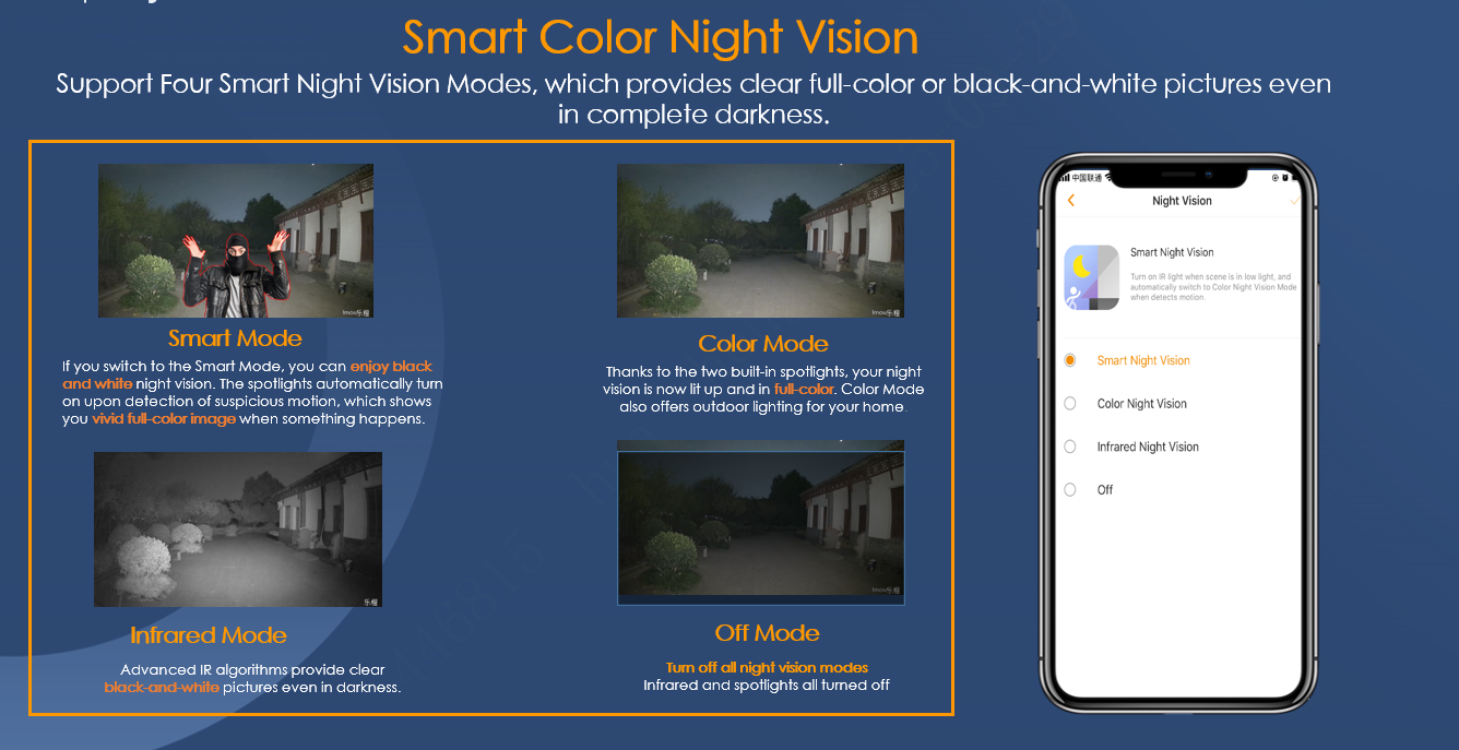 4 chế độ nhìn đêm thông minh – Tầm nhìn ban đêm lên đến 30m, đảm bảo hình ảnh rõ ràng trong bóng tối.
