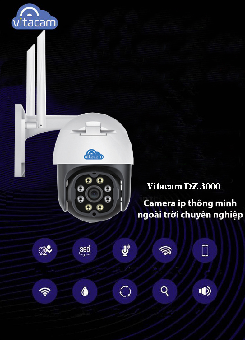 Năm 2020, Vitacam tung ra thị trường dòng camera mini Speed Dome PTZ ngoài trời thông minh Vitacam DZ3000 đáp ứng đầy đủ yêu cầu thiết yếu nhất của một chiếc camera ngoài trời với chất lượng hình ảnh sắc nét đạt Full HD 1296P, độ phân giải camera 3.0Mpx, đặc biệt hỗ trợ các công nghệ camera ip thông minh kết nối wifi, quay quét 355 độ ngang, 100 độ dọc giúp chiếc Vitacam DZ 3000 có góc nhìn toàn cảnh siêu rộng.