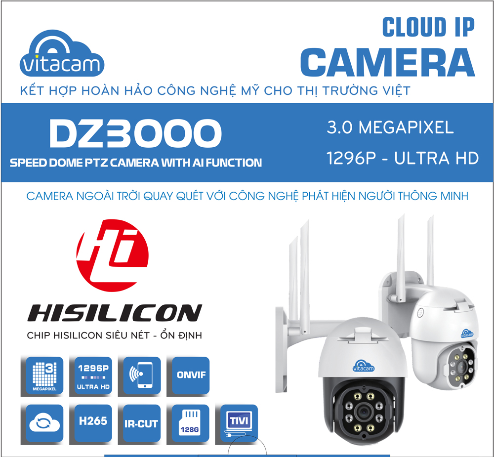 Vitacam DZ3000 độ phân giải 3.0mpx chất lượng hình ảnh Ultra HD 1296P