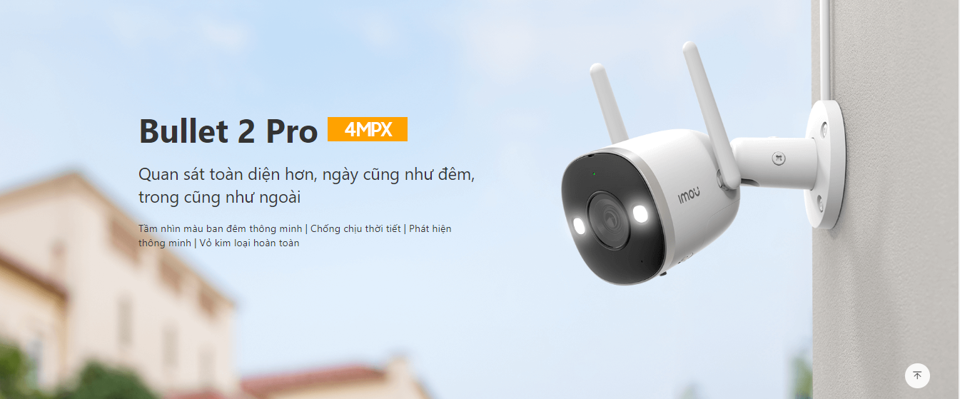 CAMERA WIFI IMOU BULLET 2 PRO IPC - F46FEP - 4MP CÔNG NGHỆ FULL COLOR GHI HÌNH MÀU RÕ NÉT KỂ CẢ VÀO BAN ĐÊM, PHÁT HIỆN CHUYỂN ĐỘNG NGƯỜI LẠ, TÍCH HỢP MICRO, ĐÈN, IP67 CHỐNG CHỌI THỜI TIẾT KHẮC NGHIỆT