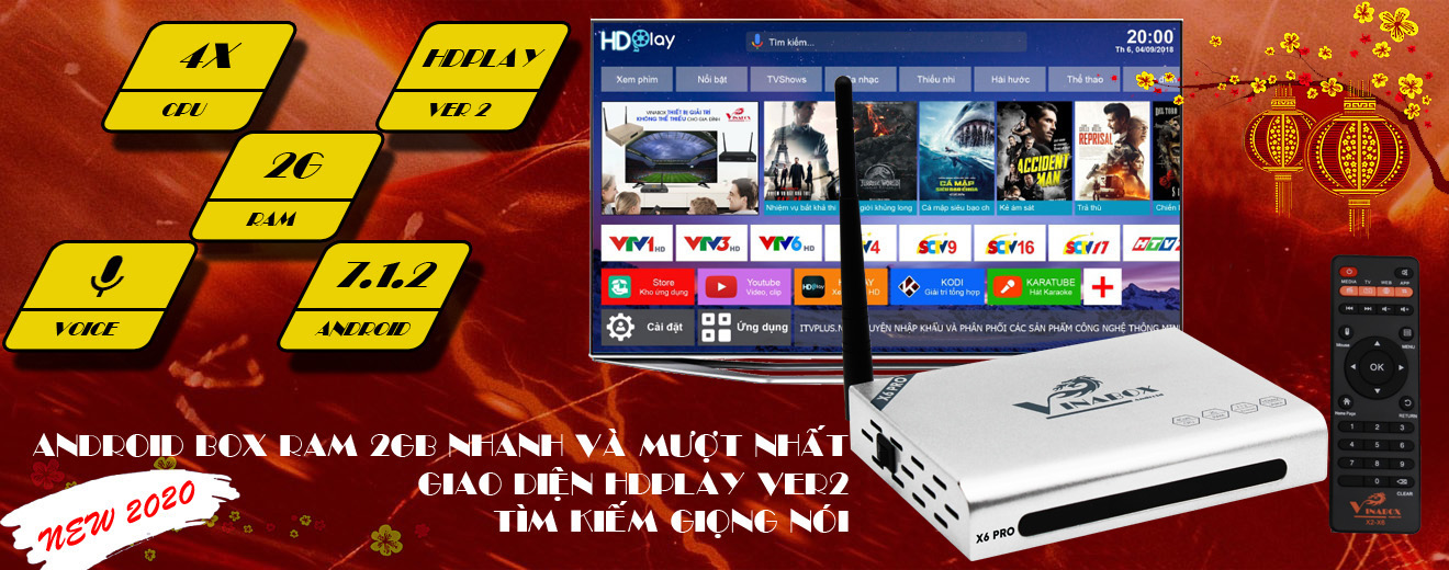VINABOX X6 Pro - RAM 2GB, MẪU VINABOX MỚI NHẤT NĂM 2020 TÌM KIẾM GIỌNG NÓI, ANDROID 7.1.2