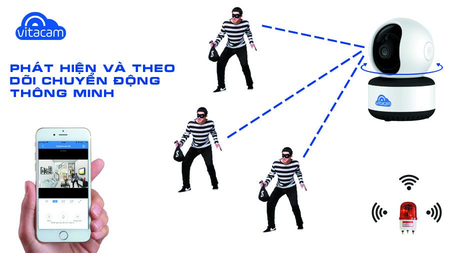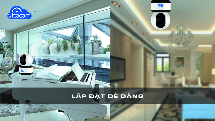 Dễ dàng lắp đặt bất cứ đâu trong phạm vi quan sát cho phép, thiết lập vô cùng đơn giản với ứng dụng Vitacam trên điện thoại, máy tính bảng
