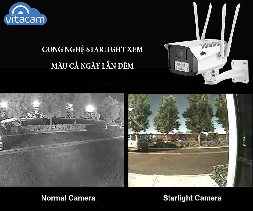 Thay vì việc phải quan sát ban đêm hoặc tại các môi trường thiếu sáng với hình ảnh trắng đen, VB1088 đã được trang bị công nghệ đèn STARLIGHT với 10 đèn LED độ sáng công suất cao giúp bạn có thể quan sát hình ảnh có màu như ban ngày. Đây là một bước phát triển vượt bậc so với công nghệ đèn hồng ngoại cũ, với công nghệ mới này thì hình ảnh thu lại có đủ 7 màu sắc mà mắt thường chúng ta có thể quan sát được, độ chi tết và khoảng cách quan sát cũng sẽ cao hơn nhiều.