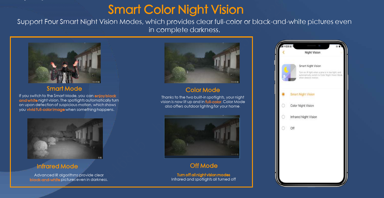 4 chế độ nhìn đêm thông minh – Hỗ trợ tầm nhìn xa đến 30m, đảm bảo hình ảnh rõ nét ngay cả trong bóng tối.