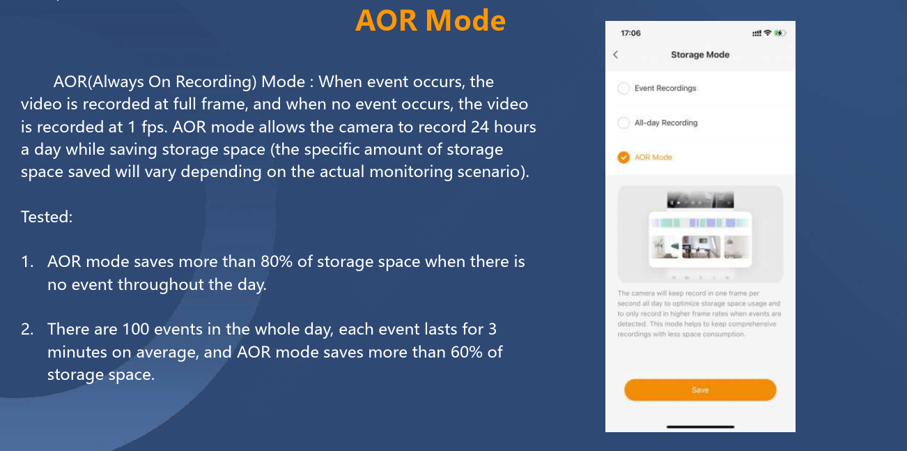 Chế độ AOR (Always-On-Record) – Ghi hình liên tục, tiết kiệm dung lượng lưu trữ.