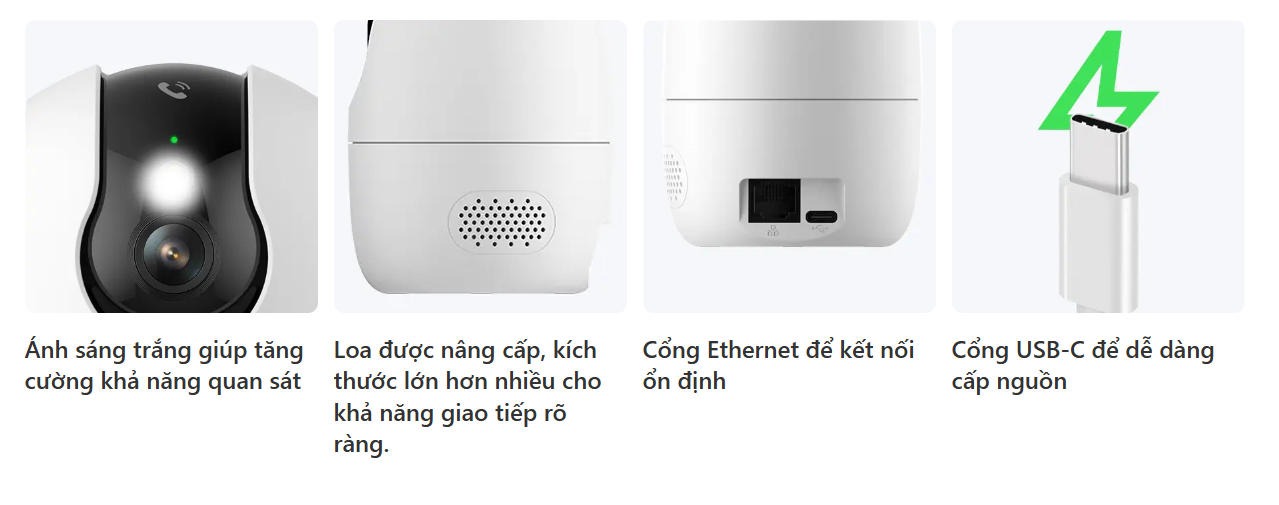 Camera hỗ trợ kết nối Wi-Fi băng tần 2.4GHz và 5GHz theo chuẩn Wi-Fi 6, mang lại tốc độ truyền tải nhanh và độ ổn định cao. Ngoài ra, cổng mạng LAN giúp camera hoạt động ổn định trong môi trường sóng Wi-Fi yếu hoặc yêu cầu kết nối có độ tin cậy cao.