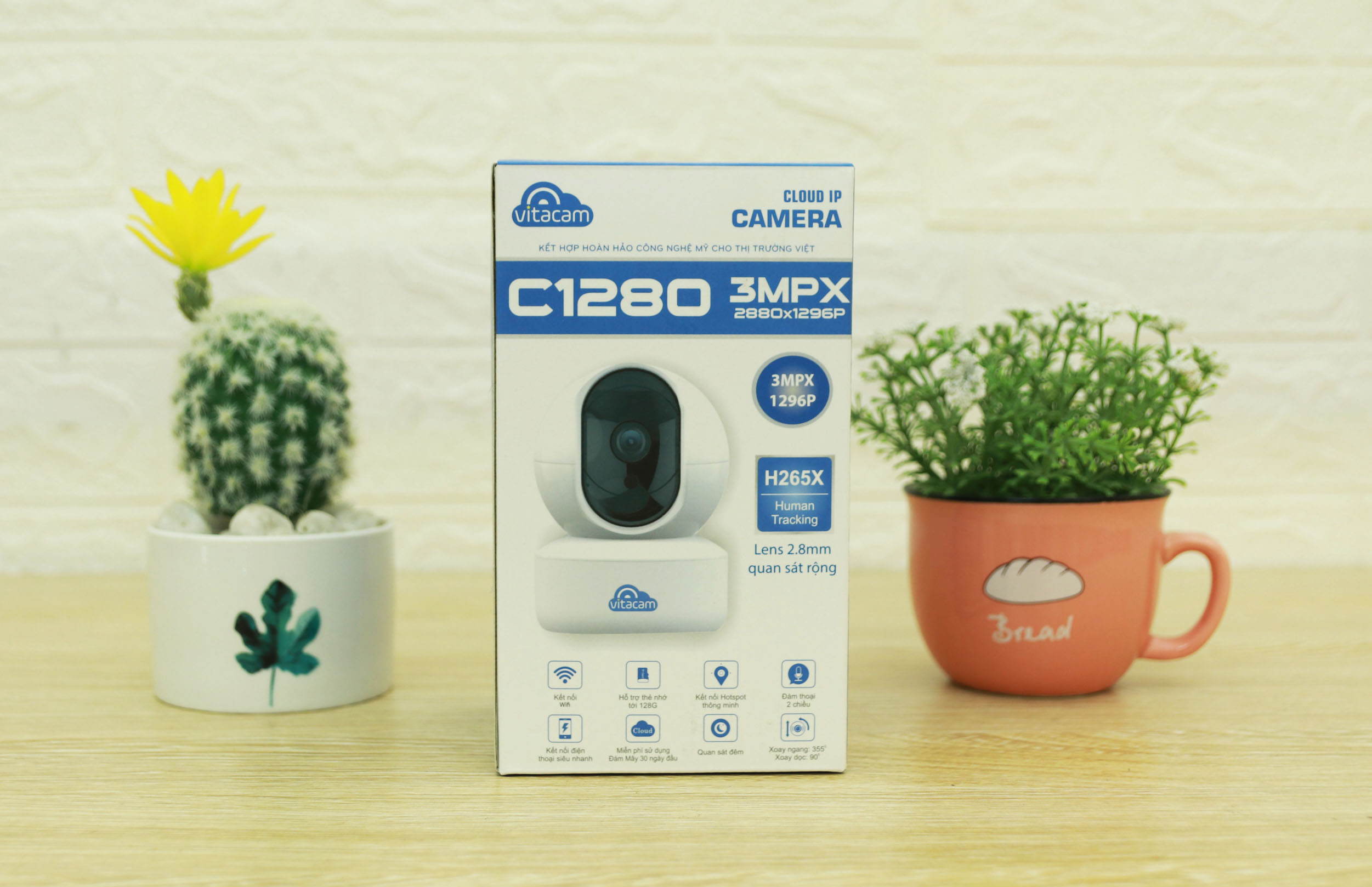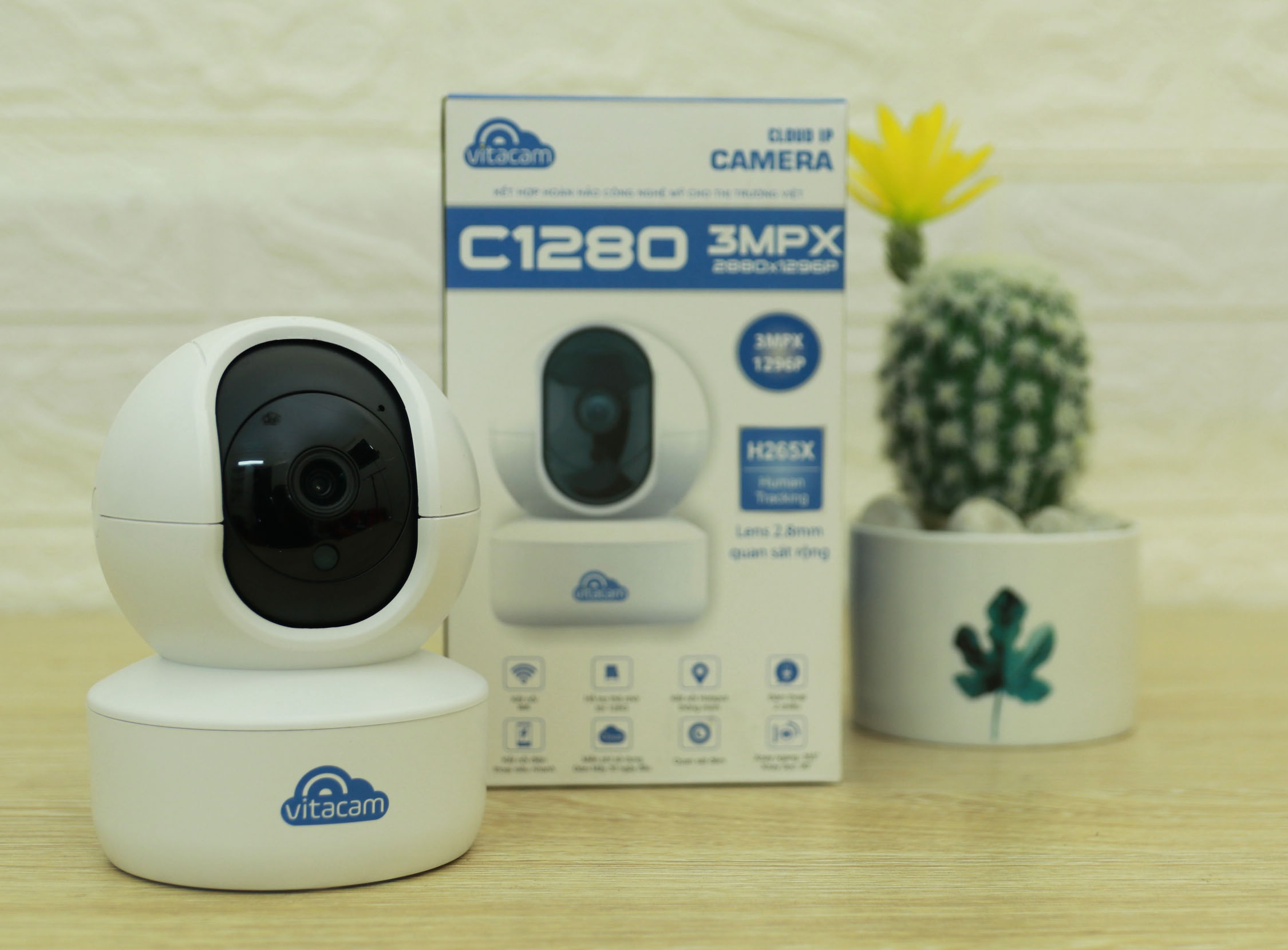 VITACAM C1280 - ĐỘ PHÂN GIẢI 3MPX CHUẨN ULTRA HD- LENS 2.8MM GÓC QUAN SÁT SIÊU RỘNG. CÔNG NGHỆ AI, XOAY 360 ĐỘ.
